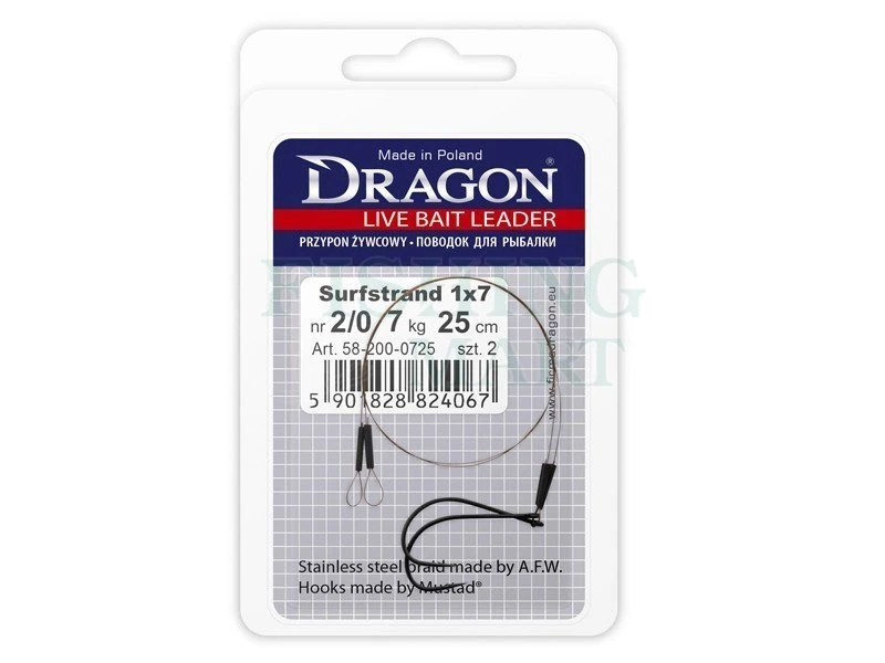 Uzbrojone pojedynczym hakiem przypony zywcowe, głównie do połowu okoni, ale też chętnie stosowane przez wielu wędkarzy do mniejszych przynęt szczupakowych. Gwarantują pełną ochronę przynęty przed obcięciem przez szczupaka! Przypony Dragon wykonane zostały z najwyższej jakości komponentów: