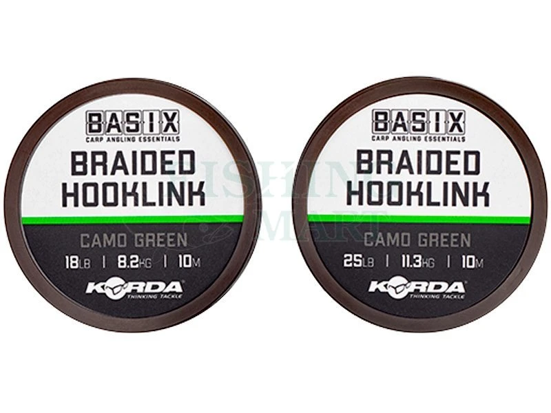 | Wybór | Plecionka karpiowa na przypony Korda Basix Braided Hooklink Camo Green 10m 18lb 8.2kg, Plecionka karpiowa na przypony Korda Basix Braided Hooklink Camo Green 10m 25lb 11.3kg |