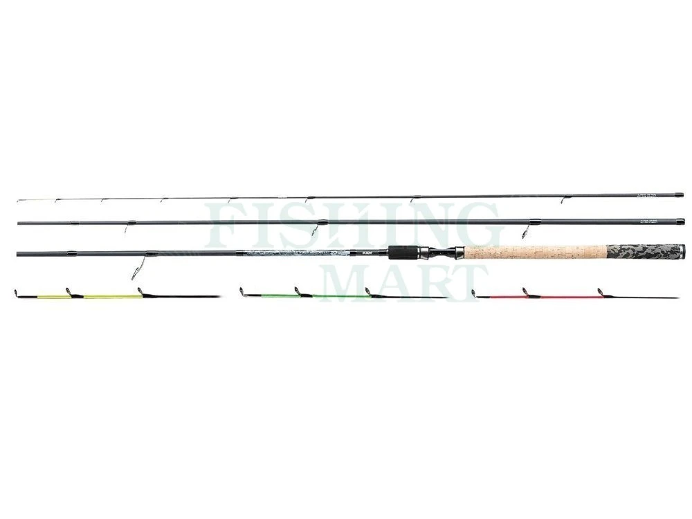 Wędki Jaxon Method Feeder Academy X posiadają w komplecie 3 drgające szczytówki z włókna szklanego, które oferujemy w 3 długościach i ciężarze wyrzutowym do 60 g.