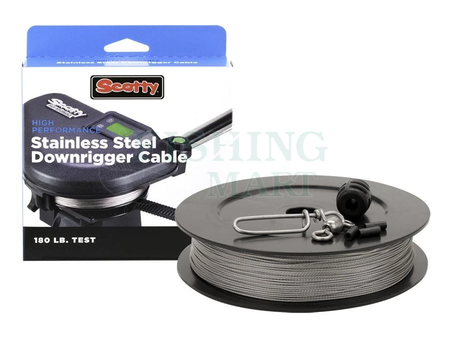 Wzmocniona plecionka stalowa całkowicie zabezpieczona przed korozją. Na szpuli 300 stóp (91 metrów) linki o wytrzymałości 180 funtów (81 kg). W komplecie zestaw zakończeniowy z agrafką.