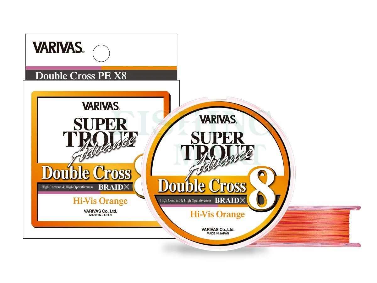 Super Trout Advance Doule Cross PE X8 Hi-Vis Orange od Varivas to nowa wersja słynnej plecionki Made in Japan. Składa się z 8-splotów i jest specjalnie zaprojektowana do łowienia pstrągów, ale doskonale sprawdza się we wszystkich lekkich i ultralekkich technikach. (Ultra Light, Light Rock Fishing i lekki spinning). Plecionka jest dwukolorowa, wszystko po to, aby zapewnić optymalną widoczność w każdych warunkach oświetleniowych. Zewnętrzna powierzchnia jest poddawana procesowi zwanemu SP-F, „Super Fluorine Coating”. Ten rodzaj obróbki, stosowany przez Varivas, gwarantuje doskonałą wodoodporność i wyjątkową odporność mechaniczną zarówno na tarcie, jak i ścieranie, dzięki czemu linka jest znacznie trwalsza i bardziej wydajna w fazie zarzucania.